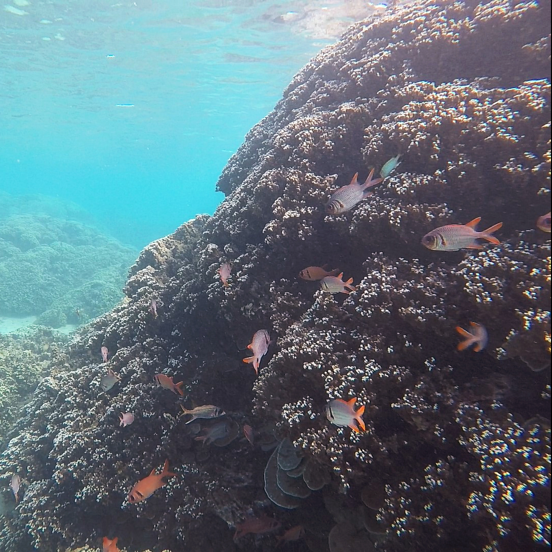 Il sera bientôt interdit de nager le corps enduit de crème solaire, non respectueuse de l'environnement, le long des sentiers de randonnées aquatiques. Ici sur la plage de Vaiava. Crédit Fanny Seguin.