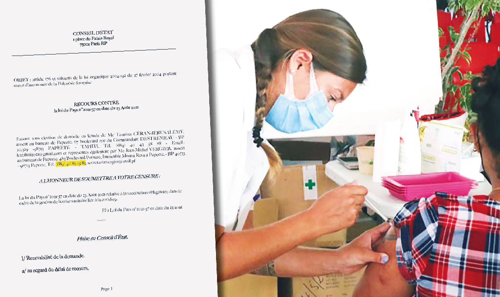 Tahiti, le 30 août 2021 - Le Conseil d’État est saisi depuis jeudi d’une demande d’annulation de la loi du Pays sur l’obligation vaccinale portée par “une centaine de plaignants”. D'autres recours sont annoncés en préparation.