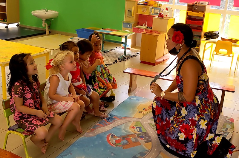 “Lorsque nous avons commencé le bilinguisme à l’école, il a fallu convaincre les parents qui étaient très sceptiques, car pour eux la langue française était celle de la réussite et ils avaient peur qu’en rajoutant le marquisien à l’école cela empêche la bonne maîtrise du français. Avec le temps les parents ont changé de point de vue. Aujourd’hui ils se sentent plus investis et d’ailleurs on voit que de plus en plus ils parlent à leurs enfants en marquisien, ils révisent les chants et le vocabulaire avec eux, ce qu’ils ne faisaient pas avant. Au niveau des enfants, on commence à voir les bénéfices de la dissociation des deux langues dans l’apprentissage général.”