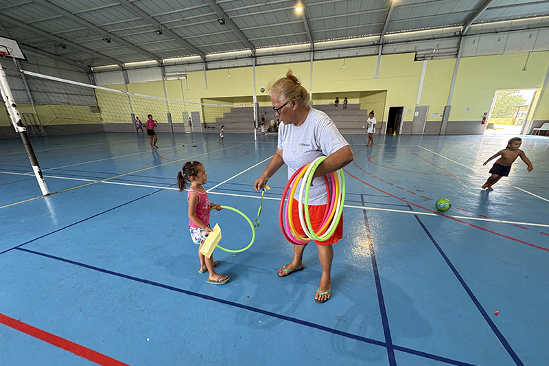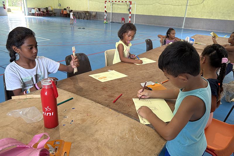 Deux semaines d’activités sont au programme des enfants de Hao durant les vacances scolaires. La première semaine, du 31 mars au 4 avril, se déroule dans la salle omnisports Maoake Taharoa et est tout naturellement dédiée à la fête de Pâques et au sport en salle. Une trentaine d’enfants de 5 à 15 ans sont accueillis et pris en charge, de 8 à 11 heures, par l’association Jeunesse Otepa qui les encadre et organise des jeux de ballon, de cerceaux et des ateliers jeux et dessins pour les plus petits.