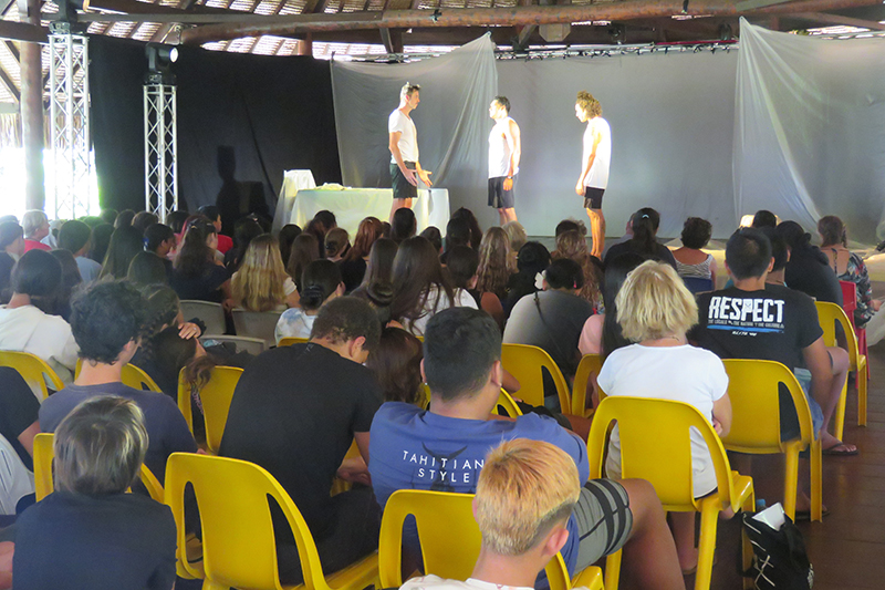 La compagnie du Caméléon continue de présenter sa pièce de théâtre Les Champignons de Paris pour raconter l’histoire de la période des essais nucléaires en Polynésie française de 1966 à 1996. Vendredi dernier, la pièce a cette fois-ci été jouée devant près de 150 élèves du lycée agricole de Opunohu et du collège de Paopao sur le site Pererau de l’association Puna Reo Piha’e’ina à Moorea. Les trois comédiens – Guillaume Gay, Tuarii Tracqui et Teuru Tepa – ont joué leur rôle à merveille puisque les jeunes élèves de l’île Sœur ont visiblement été très touchés par cette période sombre de l’histoire de la Polynésie, dont ils n’ont souvent pas ou peu connaissance.