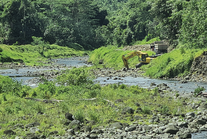 Anthony Tihoni pointe du doigt deux entreprises privées. La première est selon lui “hors la loi” car elle n'a aucune autorisation d'extraction et la seconde, RBK dirigée par Rainui Dudes, extrait toujours selon lui au-delà de son quota autorisé de 9 000 mètres cubes par un an. “Aujourd'hui, il est à plus de 20 000 mètres cubes au lieu des 9 000 autorisés (...). Depuis l'an dernier nous constatons qu'il y a un débordement. Nos rivières sont touchées, les roches, les agrégats et le tout-venant sont ramassés tous les jours”, s'insurge le président de l'association “A paruru e a faahotu ia Mapuaura”.