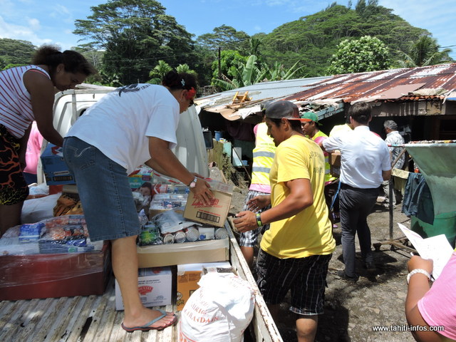Des tonnes de denrées alimentaires empilées sur des camions plateau ou dans des bennes de voitures, livrées dans chaque foyer sinistré. Aux commandes de ces opérations, les jeunes de la commune de Papeno'o. "Nous œuvrons pour les sinistrés de notre commune depuis lundi, que ce soit pour le recensement, le nettoyage ou la reconstruction des maisons. Aujourd'hui, on redistribue les dons et on voit que les familles sont assez touchées. Ça fait chaud au cœur parce que quand on a tout perdu et qu'on a des enfants, ce n'est pas évident", assure Ahuura Teamotuaitau.