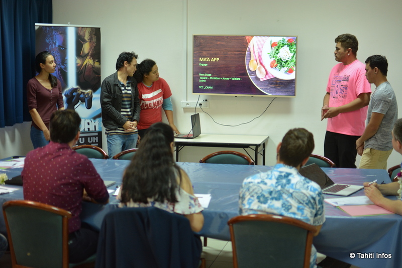 Pour couronner cette formation, ils ont dû participer à un "Hackathon" de 48 heures. Une entreprise locale leur a présenté son besoin (un traiteur qui souhaite que ses clients professionnels puissent commander leurs déjeuners directement sur une application mobile), et les "campeurs" ont travaillé deux jours complets pour imaginer une solution. Après deux nuits blanches, les quatre équipes ont présenté leurs projets d'application mobile ce jeudi matin devant un jury, présidé par la ministre du Numérique Tea Frogier, dont le ministère a financé la formation.
