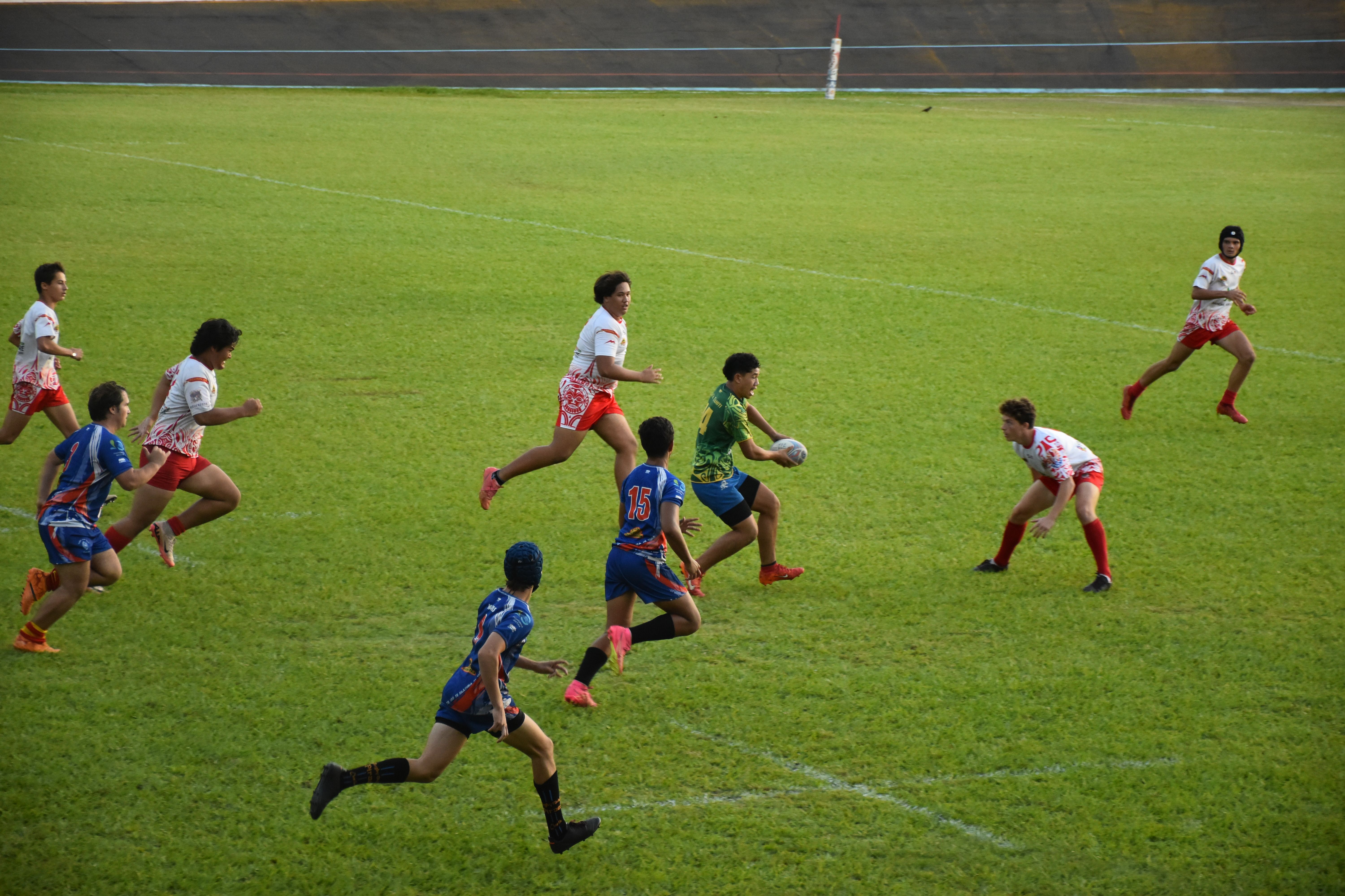 Trois équipes en U16 et deux équipes en U18, les jeunes rugbymen tahitiens se sont retrouvés ce samedi après-midi au stade Fautaua, dans le cadre du championnat de rugby à VII organisé par la Fédération polynésienne de rugby. Dernière journée avant les grandes vacances, une occasion pour ces jeunes de s'affronter une dernière fois pour cette année 2024 et de continuer à progresser dans une discipline qui attire de plus en plus.