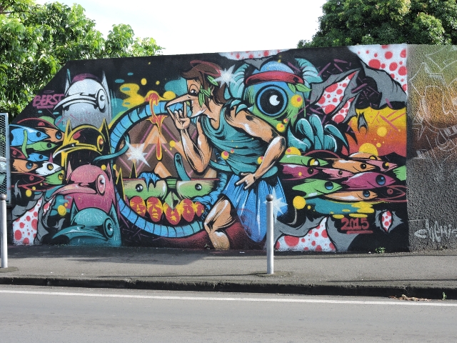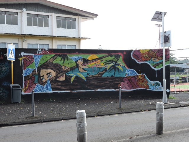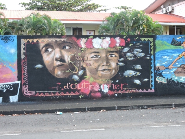 PAPEETE, le 9 mai 2015. Les murs de l'école Saint-Paul-Sainte-Thérèse ont servi de support mercredi à la compétition pour le festival Ono'u.