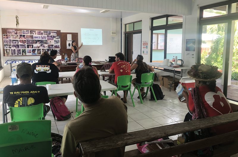 Le premier jour a d’abord permis aux membres de revoir la théorie et de comprendre les clés d’identification des différentes espèces d’oiseaux présentes aux Gambier. Les méthodes de suivi et de comptage des populations ont ensuite été présentées. Les moyens de détection des diverses espèces envahissantes telles que le rat et la petite fourmi de feu ont également été expliqués aux membres. Comme l'explique Poerani Teuira, l'une des participantes, “toutes ces informations ont permis de prendre conscience de gestes simples au quotidien qui peuvent parfois porter atteinte aux oiseaux… Parfois, on ne se rend pas vraiment compte car on ne sait pas, mais à présent, avec la formation, l’on sait.”