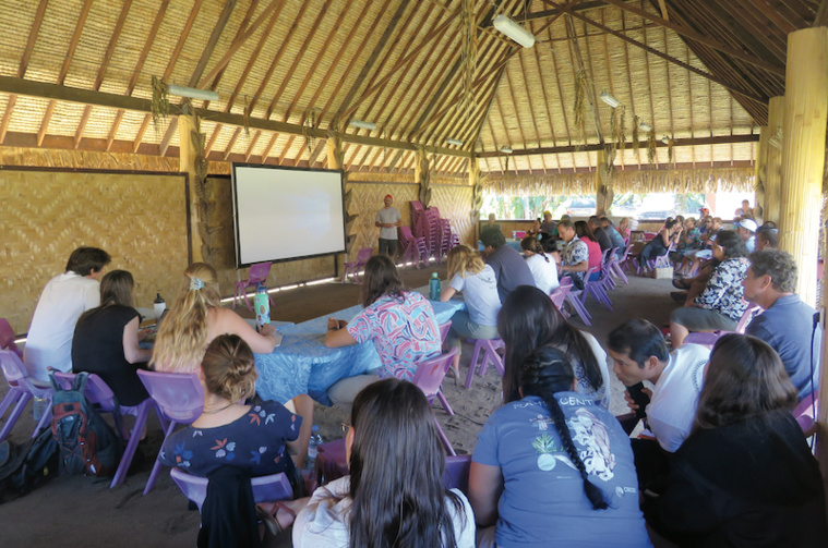 Moorea, le 27 juin 2022 - La restitution des travaux de recherche du projet Recopem dans le lagon de Moorea, menés en collaboration avec des scientifiques, des pêcheurs et un ethnologue depuis 2018 a eu lieu samedi au Fare Amuiraa de Maatea. Elle s'est déroulée en présence notamment de quelques comités de pêche de l’île. Le but du projet était d’étudier les interactions entre les poissons herbivores et les algues ainsi que la compétition entre les algues et les coraux.