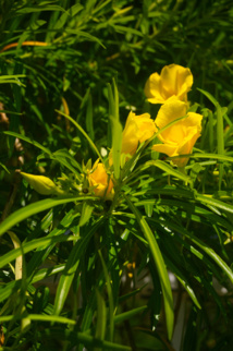 Incontournable dans les parcs, jardins et espaces publics, le laurier à fleurs jaunes, originaire d’Amérique tropicale, est extrêmement toxique ; les substances tonicardiaques que renferme la plante peuvent être mortelles pour l’homme. Les fruits notamment, en forme de berlingot, attirent l’attention des enfants qui doivent être informés du danger que cette plante représente.