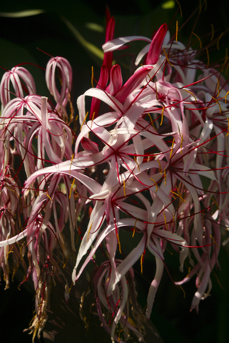 Qu’il s’agisse de l’espèce à fleurs roses (notre photo) Crinum augustum, ou de l’espèce plus courante à fleurs blanches, Crinum asiaticum, les “poireaux de mer” ou riri, comme on surnomme ici ces Amaryllidacées, présentent les mêmes dangers ; toutes les parties de la plante sont toxiques et même la sève peut provoquer de pénibles irritations sur la peau.