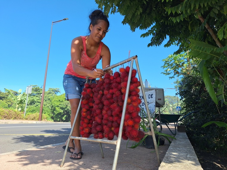 “On peut vendre jusqu’à 50 paquets par jour ! On en a tellement qu’au bout d’un moment, on est fiu de les manger”, s’amuse Henriette Chapman. “L’année dernière, on n’avait pas eu beaucoup de ramboutans, mais cette année, c’est à volonté ! Il y a plusieurs variétés qui existent, alors les gens demandent systématiquement si la chair se détache bien du noyau. Ils appellent ça des ‘ramboutans kava’. Mon cousin me fournit aussi en ramboutans jaunes, qu’on voit depuis quelque temps et qui sont de plus en plus recherchés. Ils sont bien sucrés et ça change !”