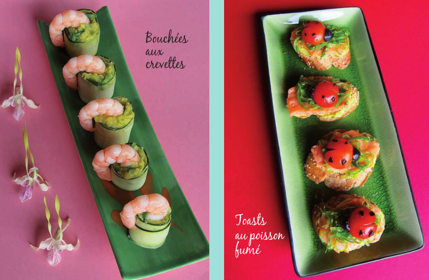 Après les recettes végétariennes, à la noix de coco, aux fruits exotiques…, Maeva Shelton vient de sortir un livre de recettes à base de poissons et de fruits de mer. Une nouvelle fois, ses recettes de cuisine sont le résultat d’une harmonie savoureuse entre ingrédients sains et goût des îles que l’on a plaisir à savourer dès la lecture du carnet de recettes. Les livres de Maeva Shelton possèdent toujours d'aussi belles images et de photos et regorgent de bonnes idées de présentation. Ainsi des toasts au poisson fumé prendront une autre allure avec des demi-tomates cerises sur lesquelles ont été déposées délicatement des petits morceaux d'olives noires tels les petits pois noirs d'une coccinelle.