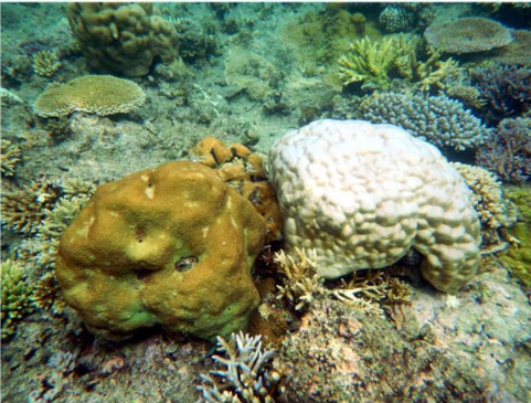 Le blanchissement des coraux est dû à une perte substantielle ou complète des algues symbiotiques contenues dans les tissus des coraux et/ou à une diminution des concentrations en pigments photosynthétiques contenus dans ces algues.