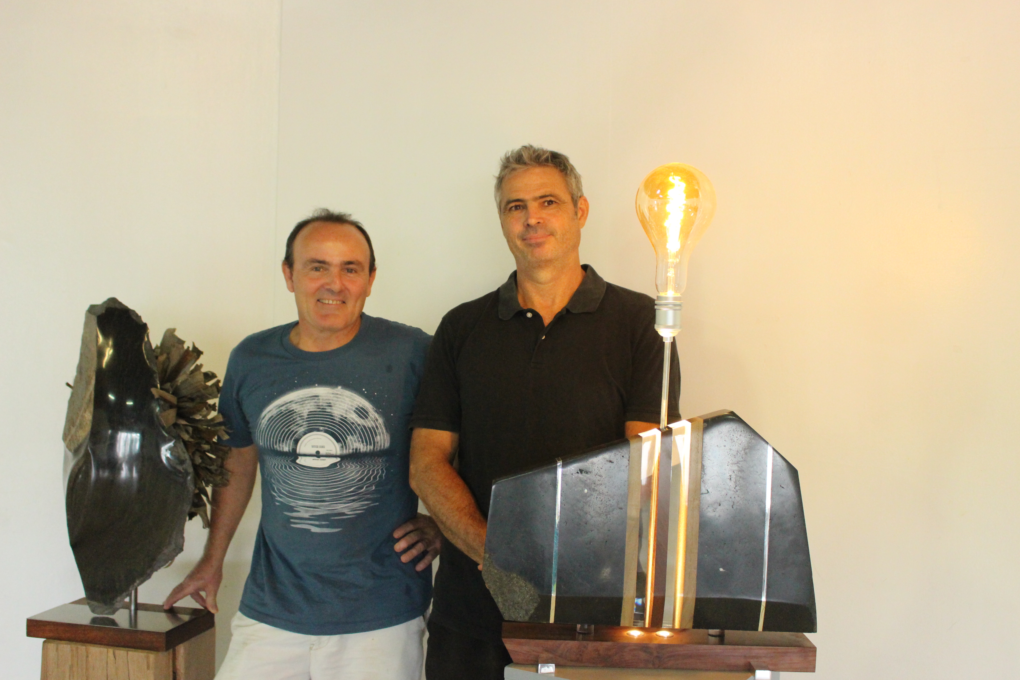 L’un, Gilles Naras, propose des luminaires design. Il découpe des pierres qu’il remodèle ensuite en "essayant de respecter les formes". Il marie ses pierres avec du bois, de l’aluminium, du plexiglas. Cette exposition est une première pour lui, pour ce travail précisément "et me demande vraiment quel impact cela va avoir sur le public".