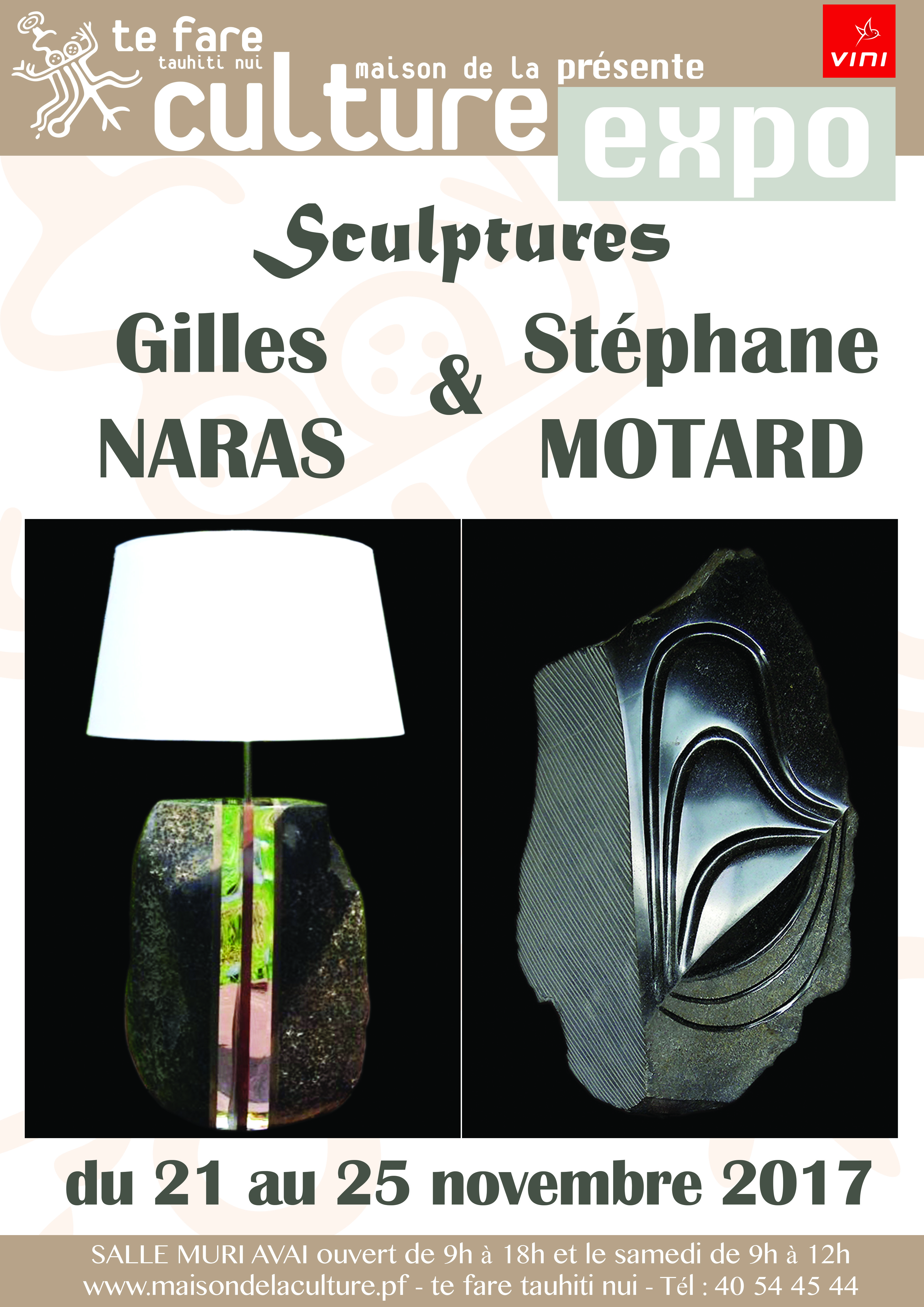 PAPEETE, le 20 novembre 2017 - Ouverte ce mardi, l’exposition de Gilles Naras et Stéphane Motard comprend une trentaine de pièces. Des pierres sculptées pour les amoureux de la matière. Le premier découpe, assemble, marie la pierre au bois, à l’aluminium ou encore au plexiglas pour donner des naissances à des lampes design, le second travaille ses blocs de manière à faire apparaître des yeux.