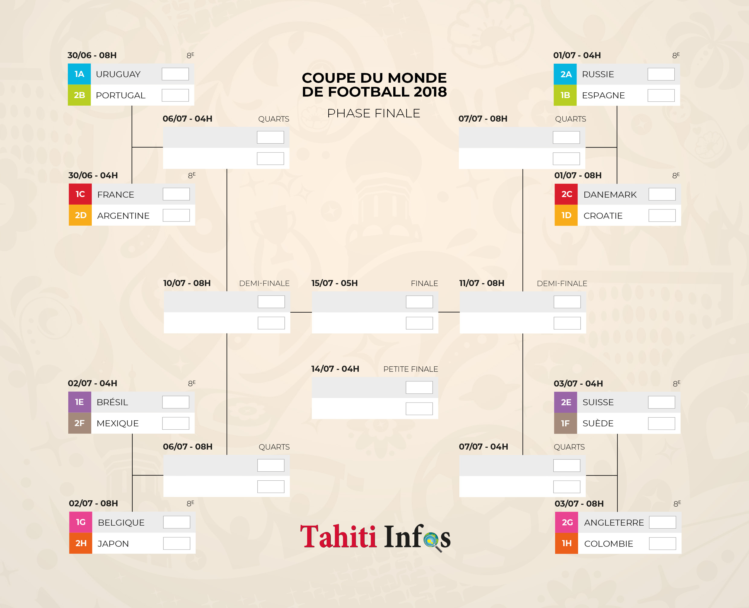 Moscou, Russie | AFP | jeudi 28/06/2018 - Les seize équipes qualifiées pour les 8e de finale de la Coupe du monde sont désormais connues: il s'agit de la Russie, l'Uruguay, la France, le Danemark, la Croatie, l'Argentine, l'Angleterre, la Belgique, l'Espagne, le Portugal, le Mexique, la Suède, le Brésil, la Suisse, la Colombie et le Japon.
