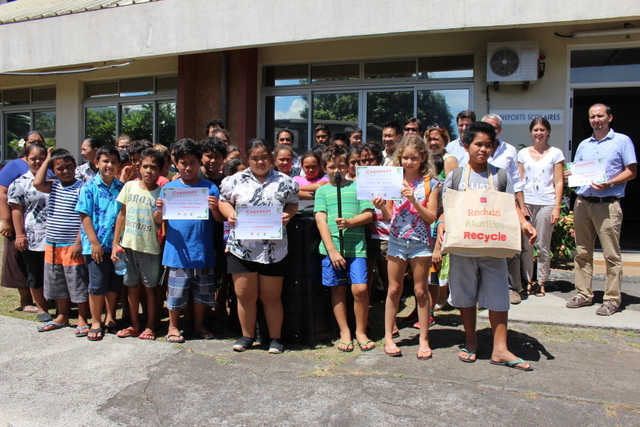 Dans la catégorie école élémentaire, ont été récompensées : la classe de CM1 d’Hitimahana de Mahina avec un "tableau sur la biodiversité", à partir de différentes matières recyclées et la classe multiniveaux de Tu’oro Tamarii d’Apataki aux Tuamotu pour sa "fabrication de différents objets".