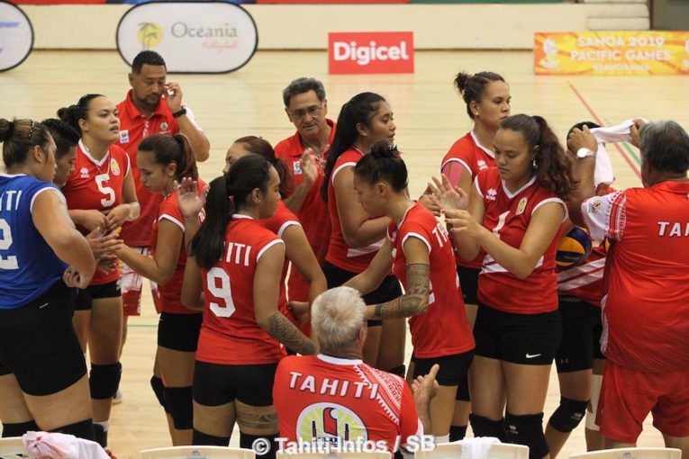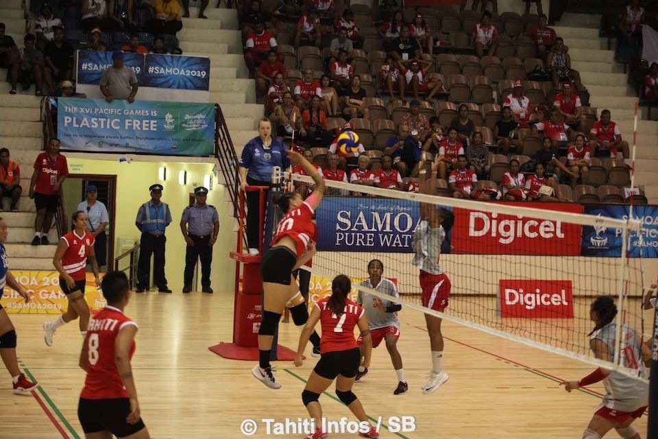APIA, le 19 juillet 2019 - Après avoir battu les Samoa en demi-finale trois sets à zéro la veille, la sélection féminine de volleyball menée par Abel Temarii a affronté en finale ce vendredi soir la sélection de Calédonie. Le match s'est déroulé en trois set gagants.