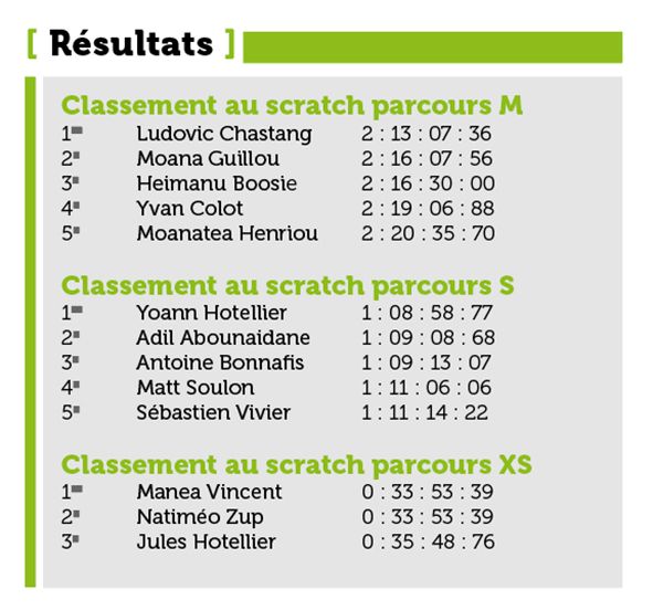 Pour ce premier triathlon de la saison, les 113 participants ont prouvé que nos triathlètes se portaient bien et que la future génération était bien en place. Au vu de l’arrivée spectaculaire du parcours XS, qui a vu une égalité parfaite entre les deux jeunes espoirs, Vincent Manea et Zup Natiméo, l’avenir du triathlon polynésien s’écrira en lettres d’or.