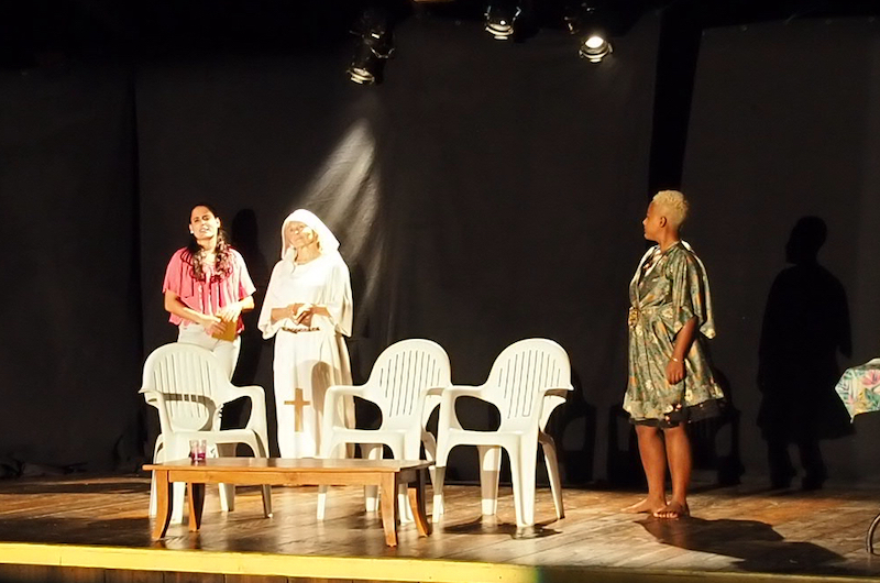Parmi les comédiens, Akahi Bonno, âgé de 9 ans, originaire de de Temae : “Auparavant, j’aimais bien jouer de la comédie. J’ai ensuite décidé de suivre ces cours de théâtre. J’aime le spectacle, surtout le fait de présenter devant les gens et de s’exprimer. J’aime aussi les répétitions. J’étais un peu stressé au début de la soirée, mais je me suis senti mieux en commençant à parler. Le théâtre m’aide à bien m’exprimer”. “J’avais envie de faire du théâtre pour essayer de mieux me présenter en public, de parler plus clairement. Le théâtre m’a aussi fait travailler ma mémoire ainsi que des expressions physiques et orales. Il faut travailler longtemps pour faire les répliques. Il y a toujours des incidents et des petits accidents qui peuvent survenir quand tu joues. C’est ça aussi le théâtre ! C’est parfois difficile, mais ça ne l’est plus si on met du cœur et de l’entrain”, a témoigné pour sa part Pascale Monnier, une retraitée de Maharepa.