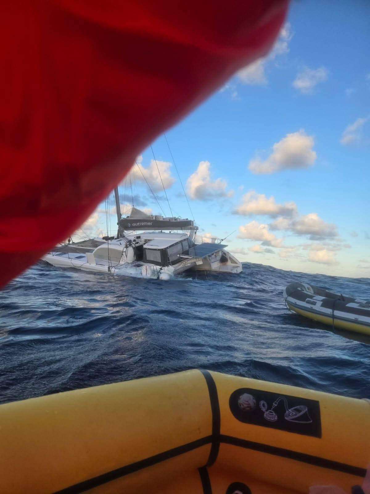 Premier arrivé sur zone, le Gardian a découvert le catamaran faisant naufrage, avec une annexe et un radeau de survie présentant des entrées d'eau. Les naufragés étaient tous sains et saufs. Une chaîne de recherche et de sauvetage (SAR) de 10 places a été larguée en attendant l'arrivée du Stardust, un voilier situé à quatre heures de navigation. En début d'après-midi, les trois naufragés étaient récupérés à bord.