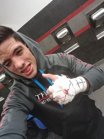 « J’ai l’arcade droite qui a été touchée sur un « overhand » du gauche. J’ai reçu aussi un bon coup dans la nuque, cela m’a sonné pendant le combat, j’ai une bosse dans le cou, mon poignet gauche aussi a été touché mais ca va, pas de gros bobo, pas de fracture. (…) Cette victoire fait plaisir, cela va nous donner un coup de « peps » à la salle. Cela va nous motiver. Après ma victoire du mois de mars, enchainer avec une autre victoire c’est satisfaisant. »