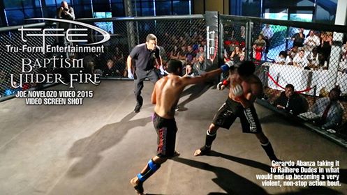 Ce combat fut très difficile pour le Tahitien face à Gerardo Abazan, dit 'le Samurai', plus petit que lui mais ‘cogneur’ et âpre au combat. Raihere Dudes a pu s’imposer aux points et les deux combattant ont été au terme du temps règlementaire, ce qui n’a pas manqué de laisser des traces sur les visages de deux combattants.