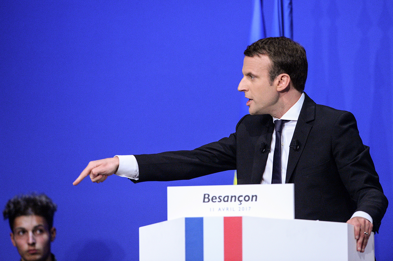 Besançon, France | AFP | mardi 11/04/2017 - Emmanuel Macron s'est posé mardi à Besançon en candidat de "l'indignation véritable" et du renouvellement de la classe politique, répondant à la percée de Jean-Luc Mélenchon dans les sondages, qui bouscule le sprint final de la présidentielle.