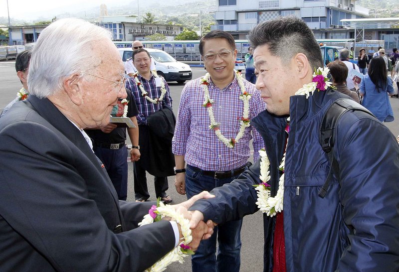 PAPEETE, 17 février 2014 - (communiqué de la présidence du Pays) Le Président Gaston Flosse a accueilli ce lundi une importante délégation chinoise composée du Groupe Tian Rui Aquaculture, conduite par le président de la société, M. WANG Cheng, lui-même accompagné de techniciens en aquaculture et en énergie photovoltaïque. Par le même vol est également arrivé une seconde délégation chinoise, du Groupe Forebase et Banyan Tree Resort, conduite par M. CAI Jianchu, directeur exécutif, lui aussi accompagné de techniciens et d’architectes.