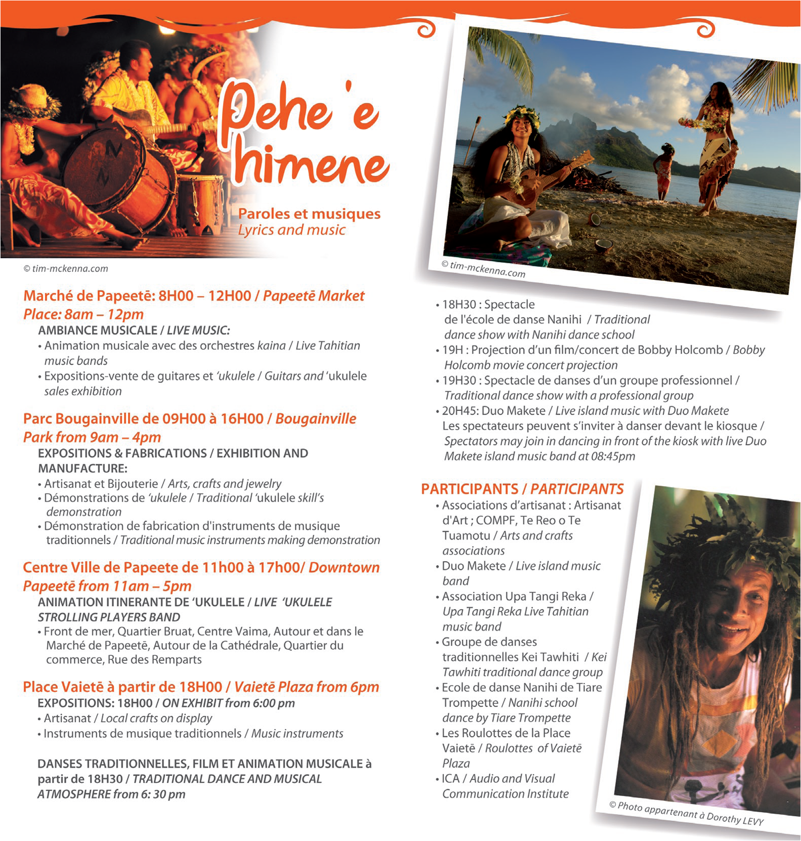 Diverses animations (expositions, démonstrations, concours, animations musicales, spectacle de danses traditionnelles...) seront proposées aux touristes et à la population locale au marché de Papeetē, sous la pergola du Fare Manihini et Place Vaietē.