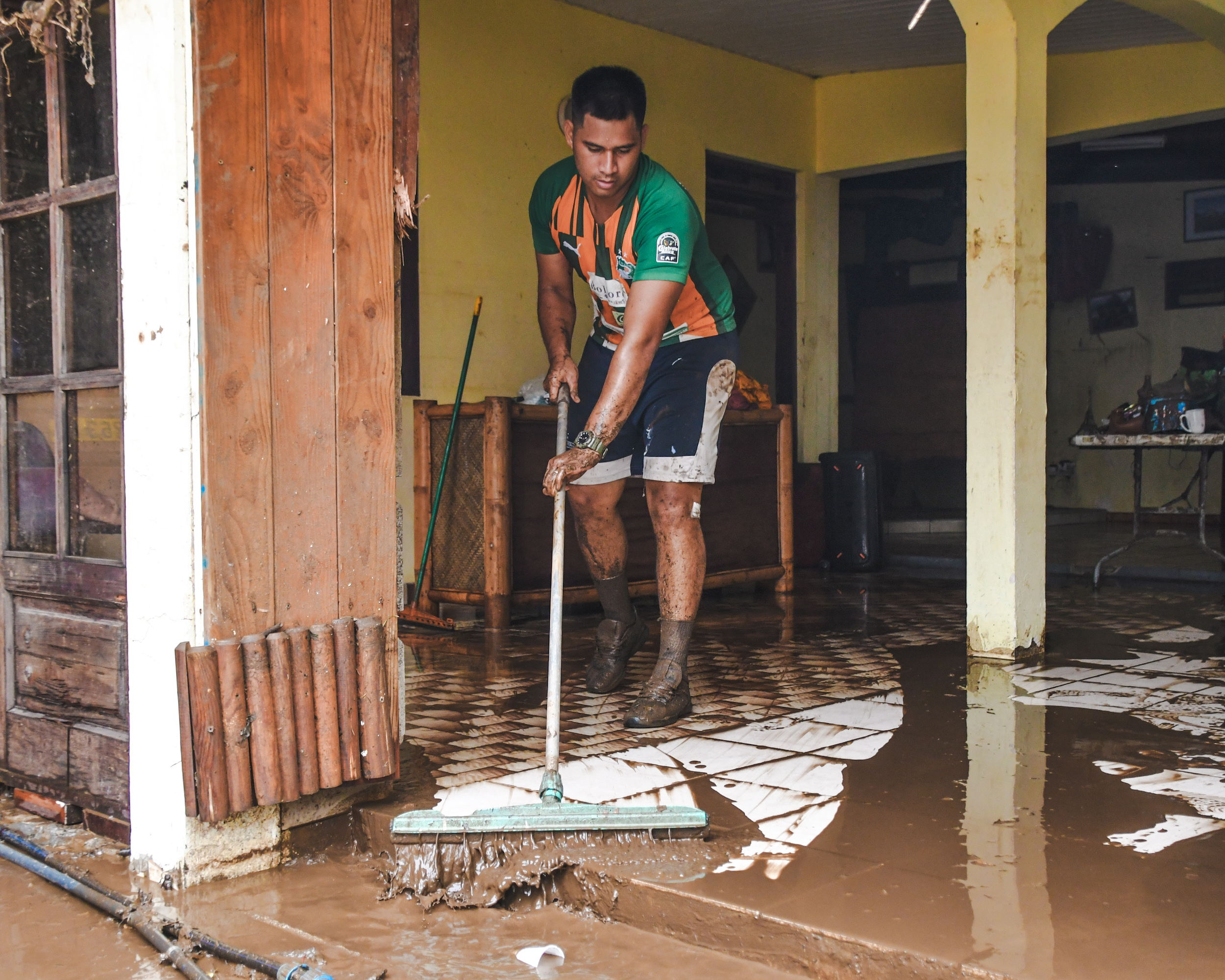 Tahiti, le 13 février 2024 – Au lendemain des fortes précipitations qui ont particulièrement touché la côte est de Tahiti, l'heure n'est pas encore au bilan. À Mahina, dans les quartiers Amoe et Tuauru, habitants et agents communaux sont encore à l'œuvre afin de nettoyer et sécuriser ce qui peut l'être. À la mairie, la cellule de crise reste en alerte.