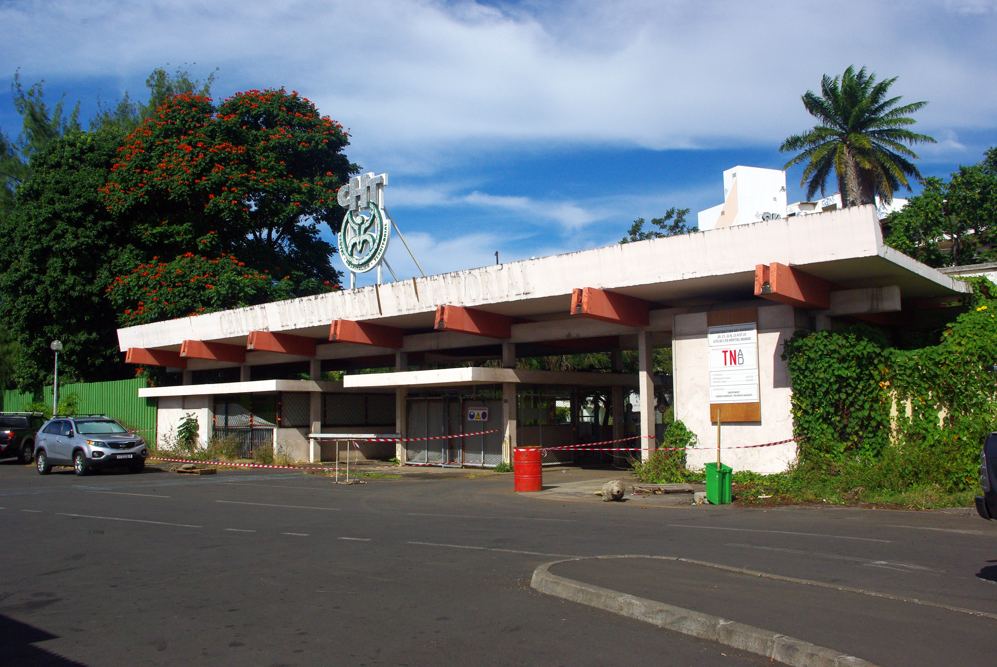 Alors que le maître d’ouvrage Tahiti Nui Aménagement et Développement (TNAD) vient de finir le désamiantage des bâtiments de l’ancien hôpital de Mamao et a déjà entamé la démolition qui devait être menée en plusieurs phases (le désamiantage et la démolition) et s'achever fin 2016, le pays et la commune prévoient de mettre en place un plan d'aménagement provisoire le temps qu'un projet concret soit signé. La déconstruction entamée en 2013 aura duré environ 18 mois pour un coût estimatif de plusieurs centaines de millions de francs. En tout, vingt bâtiments ont été désamiantés sur le site. Les premiers bâtiments à avoir été démolis sont ceux qui étaient dépourvus d’amiante, aujourd'hui il ne reste plus que le bâtiment principal à raser soit 30 000m2 de plancher, le rez-de-chaussée et cinq étages.