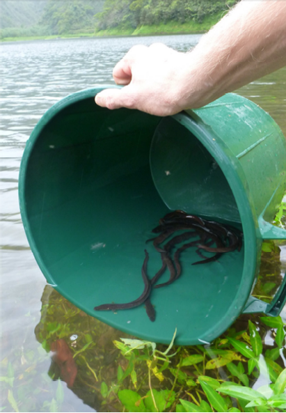 Le lac Vaihiria a fait l’objet d’une étude particulièrement poussée afin de statuer sur la présence ou non d’anguilles dites à oreilles. Un seul individu a été capturé ce qui laisse penser que la biomasse est devenue faible. Le lac Vaihiria ne communique avec la rivière (et donc l’océan) que par des failles de très faible taille. Il n’est pas exclu que l’aménagement hydroélectrique ait pu modifier un équilibre biologique très sensible. Néanmoins des études complémentaires sont nécessaires pour confirmer ou infirmer les premières observations. Suite à ce constat, 130 anguilles juvéniles prélevées juste à l’aval du lac ont été relâchés. Cet effort sera poursuivi , d’autres relâchés seront réalisés et des suivis biologiques seront effectués afin d’en estimer le succès sur les populations d’anguilles.