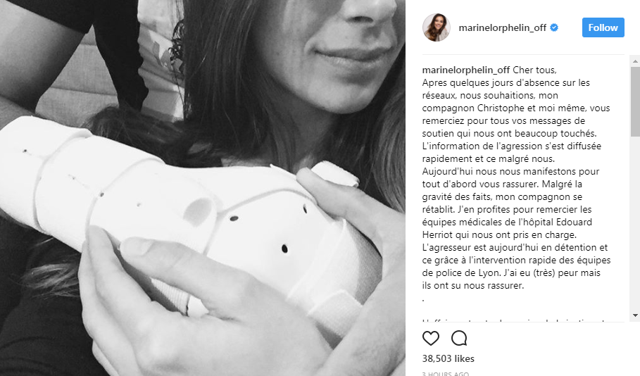 Marine Lorphelin est encore très marquée par cette violente agression. "J'en profite pour vous souhaiter encore une belle année 2018, une santé de fer et que vous profitiez de chaque instant avec vos proches car j'ai surtout réalisé que la vie peut basculer en quelques secondes... et ça n'arrive pas qu'aux autres."