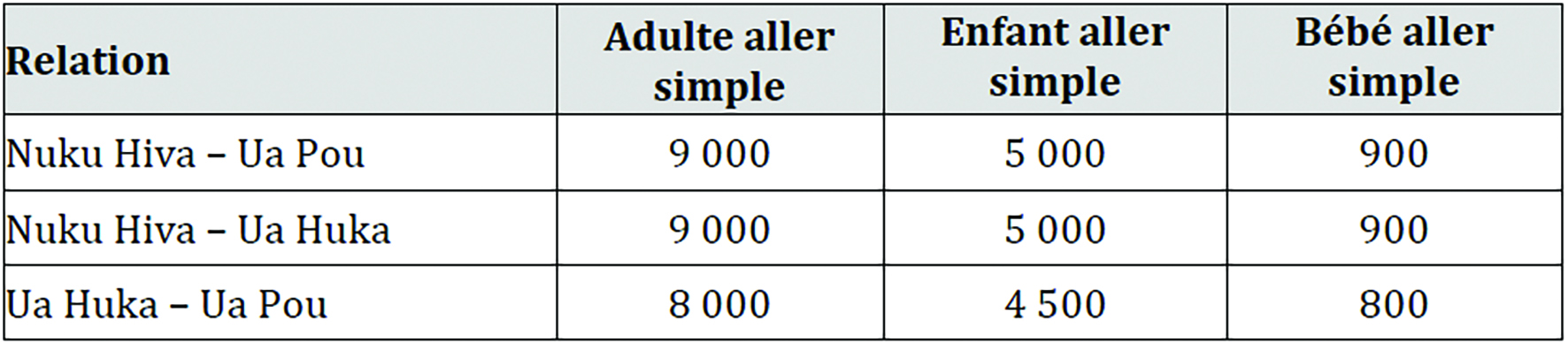 · 4 fréquences hebdomadaires entre Nuku Hiva et Ua Huka ;
