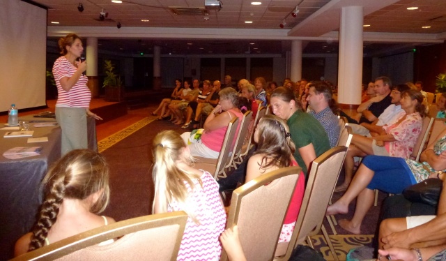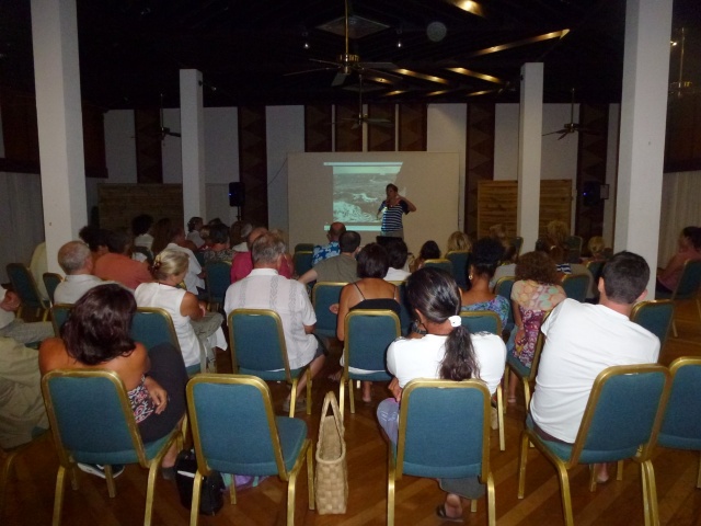 Maud Fontenoy accompagnée de Cécile Gaspar, Présidente de l’association Te mana o te moana, ont tout d’abord proposé deux séances gratuites de projection sur Moorea et Tahiti, en partenariat avec le Groupe Pacific Beachcomber.