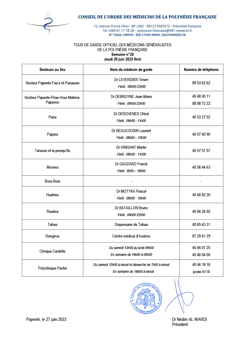Auae Faa'a assure également les urgences au 89 36 51 58