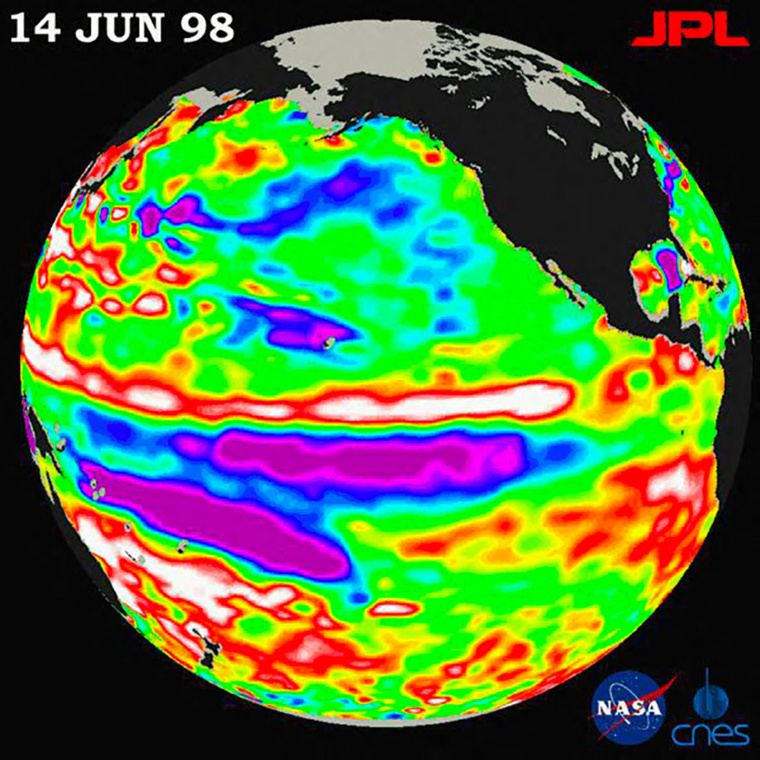 En revanche, ses eaux chaudes peuvent alimenter les ouragans dans le centre et l'Est de l'océan Pacifique, alors qu'elles peuvent freiner la formation d'ouragans dans le bassin atlantique.