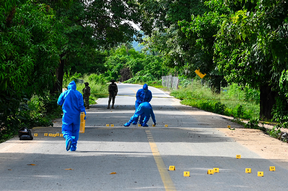 Acapulco, Mexique | AFP | mardi 23/10/2023 - Trois attaques armées ont fait au moins 24 morts, dont plus de 10 policiers, lundi dans trois Etats du sud du Mexique en proie à la violence liée au trafic de drogue, selon les autorités locales.