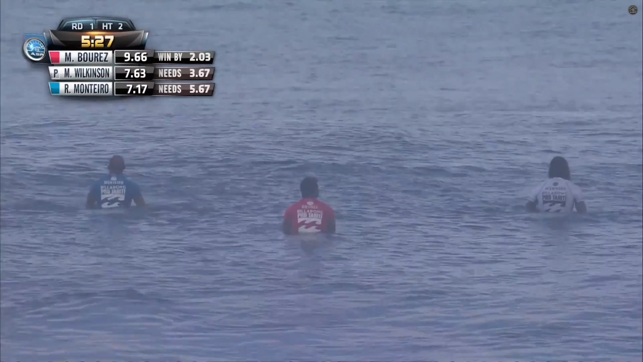 Si le round 1 avait mal débuté pour Michel Bourez, victime d'une chute dès les premières minutes du round, le surfeur a rapidement su trouver les ressources pour prendre l'avantage sur ses deux concurrents et s'est imposé avec un total de 9,66 pts, contre 7,63 pts pour Matt Wilkinson et 7,17 pts pour Raoni Monteiro. Matt Wilkinson et Raoni Monteiro devront passer par le round 2 de repêchages qui va se dérouler dans l'après midi.