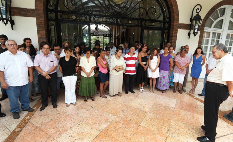 Au même moment, une minute de silence a aussi été observée par le personnel de la présidence. Les drapeaux de la Présidence et des services du Pays et des services de l'Etat sont également en berne.