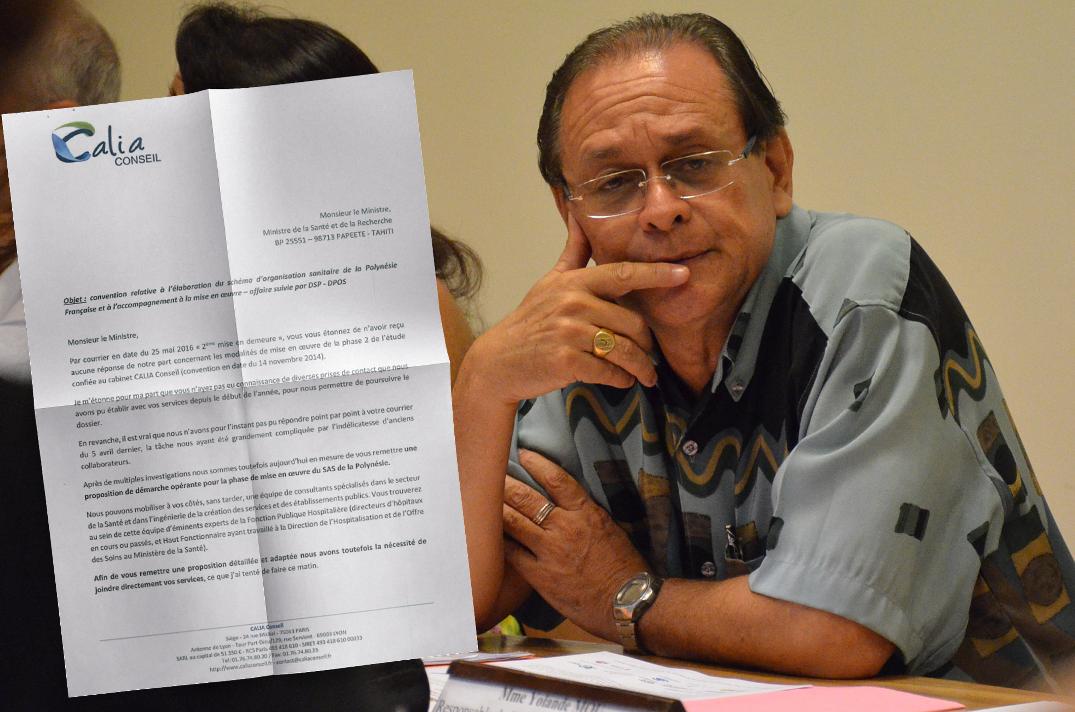 "Après de multiples investigations nous sommes (…) aujourd’hui en mesure de vous remettre une proposition de démarche opérante pour la phase de mise en œuvre du SOS", confirme le cabinet Calia par courrier adressé le 6 juin dernier au ministre de la Santé, Patrick Howell. La lettre fait suite à deux mises en demeure signifiées par le Pays au cabinet conseil parisien les 5 avril et 25 mai derniers, pour dénoncer une mission en berne depuis le 24 février et menacer d’une rupture de convention aux entiers dépens du consultant.