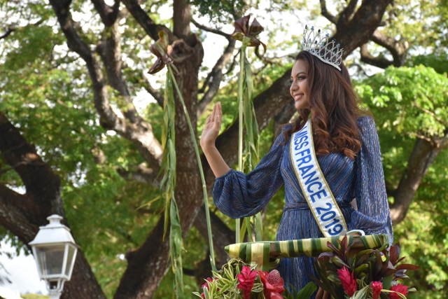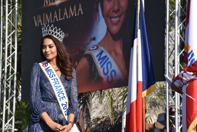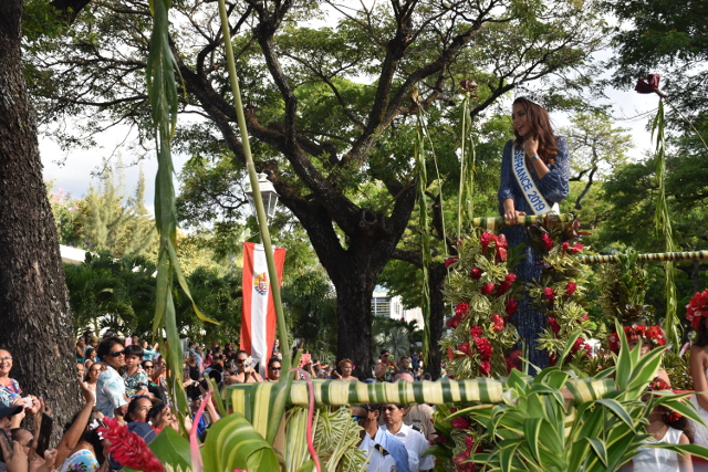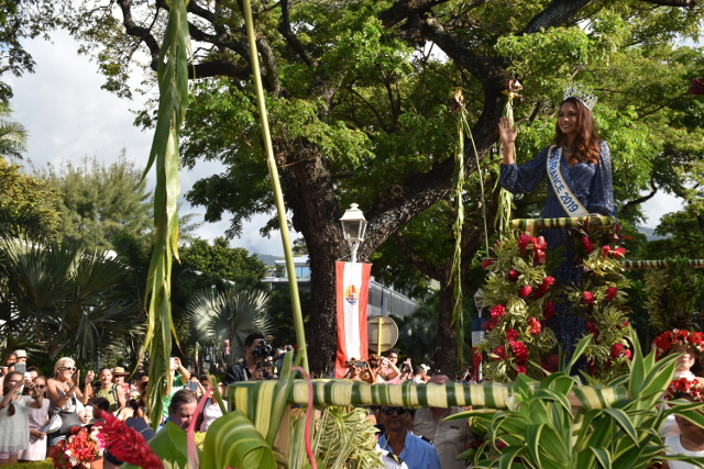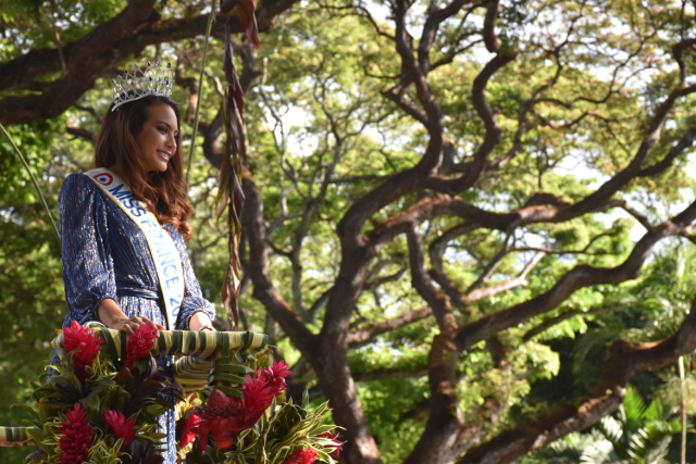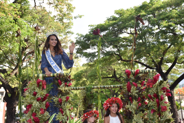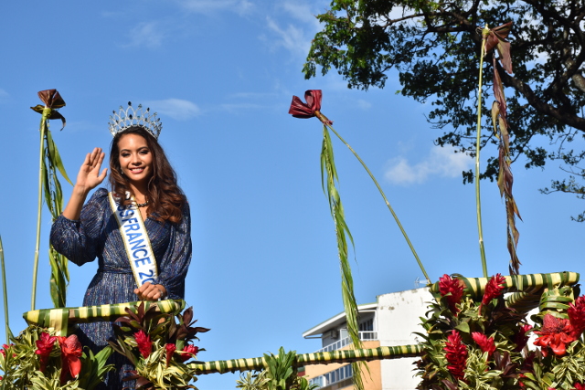 Le public était nombreux de chaque côté de l’avenue Pouvana’a a O’opa pour admirer Miss France 2019, qui a défilé sur un char fleuri. Vaimalama Chaves a tenté de répondre par un sourire ou un coucou de la main à toutes les sollicitations.