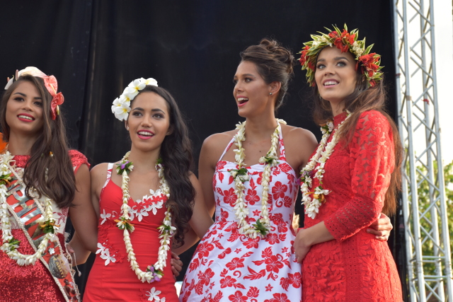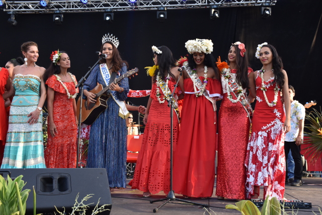 Dans les jardins de Paofai, le public a noirci les pelouses. Smartphones et appareils photos à la main, chacun a essayé d’immortaliser ce moment, attendu depuis 20 ans, depuis l’élection de Mareva Galanter comme Miss France.