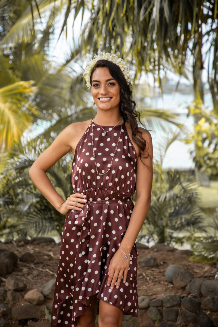 Candidate n°10 - Armonny Olin, 24 ans, 1,59m : “Ce qui m'a donné envie de me présenter c'est le fait d'être dans une phase de ma vie où je veux laisser ma part de féminité s'exprimer. J'ai envie de lui laisser assez de place pour qu'elle puisse se faire voir par le monde et je trouve que cette élection est faite pour. Je suis très reconnaissante et très heureuse de faire partie des dix candidates à l'élection de Miss Tahiti cette année. En terme d'engagement, si je suis élue, je voudrais m'assurer d'être présente pour les trois autres candidates qui seront à mes côtés. Je pense sincèrement que la promo de l'année dernière a donné le bon exemple. Elles sont soudées et elles se considèrent aujourd'hui réellement comme des sœurs. Je veux aussi être très proche de mes camarades et les soutenir.”