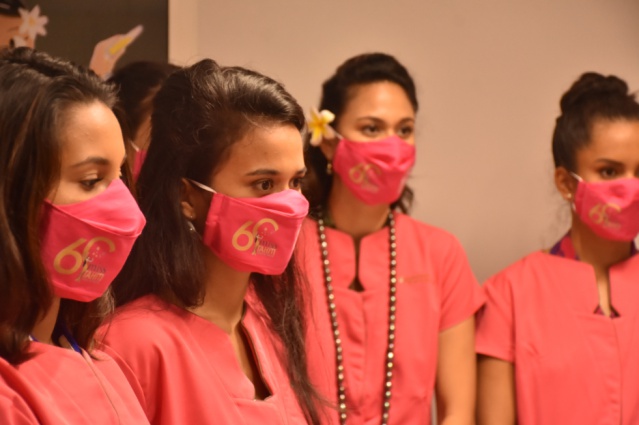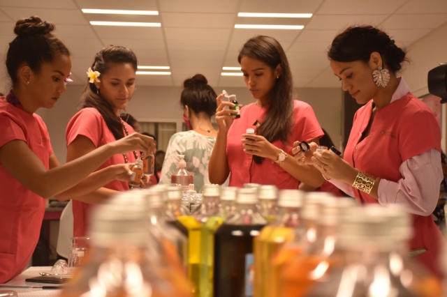 Tahiti, le 13 mai 2021 – Comme le veut la tradition, les dix candidates à Miss Tahiti ont formulé leur propre soin de beauté ce matin au laboratoire de cosmétologie de Papara. Ingrédient phare de la recette du jour : de la poudre de diamant, en hommage aux 60 ans de l’élection.