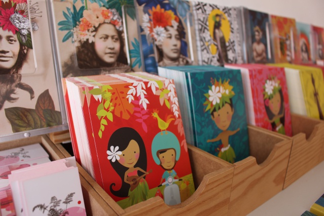 Des cartes postales, des calepins, un memory, des carnets de coloriage, des cadres, des tampons…ces réalisations n'ont, théoriquement, rien en commun. En pratique, ou plutôt en visuel, ils portent l'empreinte de Mme Carotte. Une empreinte reconnaissable en toutes : les réalisations sont fleuries, flashys, locales. Ce sont des dessins naïfs, doux et ronds, ou de vieilles photos remises au goût du jour. "Toutes les images que j'utilise sont dans le droit public et les photographes sont crédités. Pour certaines j'ai acheté les cartes postales ce qui me donne accès au droit, pour d'autres je paye un droit au Musée de Tahiti et des îles car ils appartiennent à ses collections." Les produits sont distribués depuis toujours dans deux points de vente, l'un à Tahiti et l'autre à Moorea et, à partir de ce vendredi, ils seront en libre accès une fois par semaine directement au nouvel atelier de la graphiste.