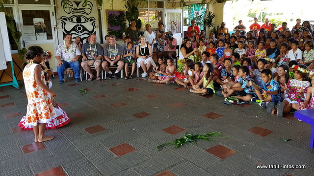 Un moment de partage culturel qui a été bien été préparé par les enseignants et les enfants. Messages d'accueil en tahitien, français et anglais, chants et danses, rien n'a été fait au hasard.