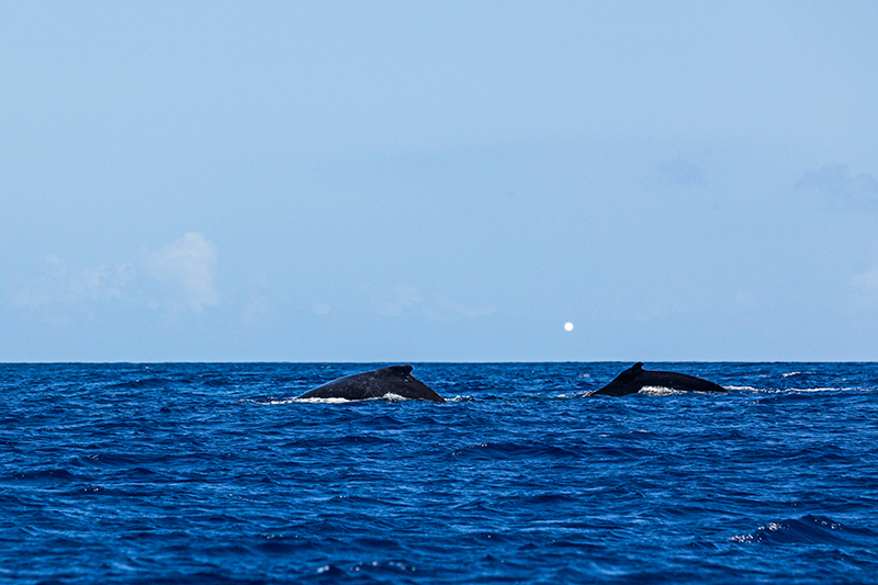 Chaque année, les baleines à bosse remontent dans les eaux chaudes pour mettre bas. Pour étudier leur population dans les eaux polynésiennes, l'association Oceania a mis en place un système de recensement basé sur deux techniques : la photo-identification de la nageoire caudale, unique chez cette espèce, et l'étude génétique en prélevant des morceaux de peaux mortes.