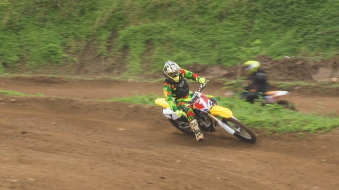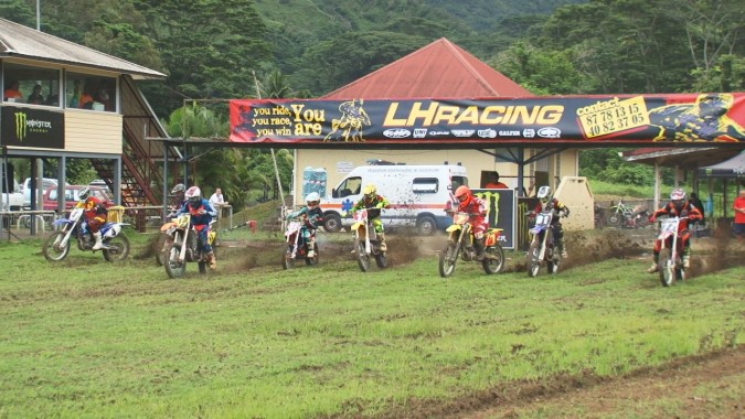 Le soleil n’était pas au rendez-vous pour cette première journée et certains tronçons du parcours étaient boueux. Dans la course reine des MX1, dès le coup d’envoi on a pu assister à un mano à mano entre Nicolas Jacq et Raiarii Vonbalou. Dans le premier virage les deux pilotes s’entrechoquent légèrement mais très vite le représentant du club Showtime prend la tête de file. A mi-parcours Raiarii Vonbalou chute dans un virage, son rival Nicolas Jacq en profite pour prendre l’ascendant.